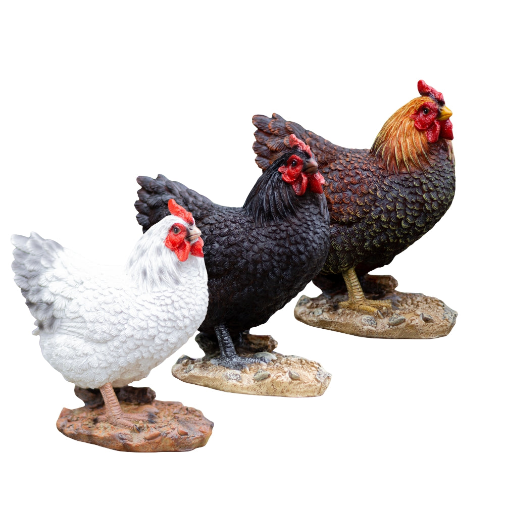 Giv dit hjem, have eller terrasse et strejf af landlig idyl med disse bedårende dværghaner i polyresin. Med deres fine detaljer og livlige udtryk spreder de øjeblikkeligt hygge og personlighed – uanset hvor de placeres.
