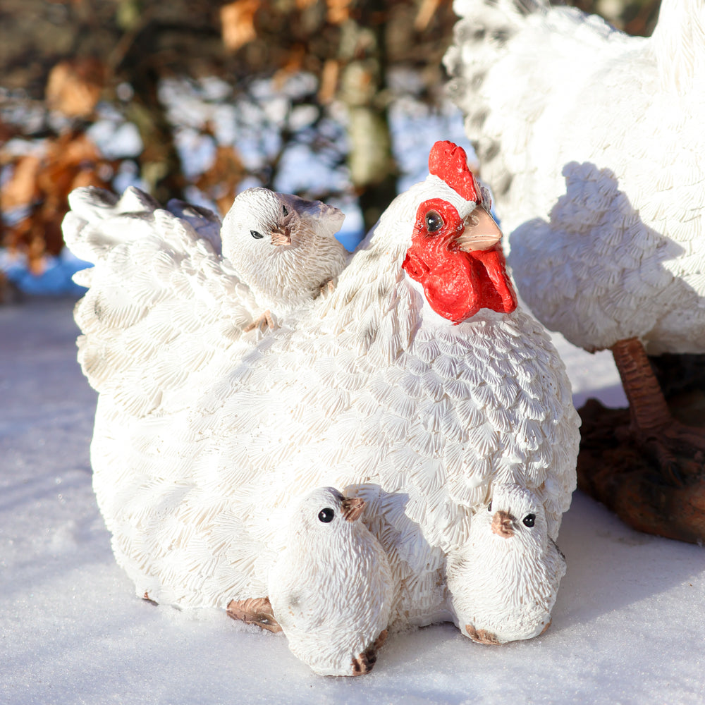 Dekorativ hønsefamilie i polyresin – perfekt til påske og forår