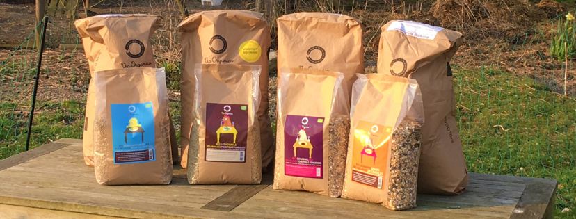 Det har før været besværligt at fodre økologisk, da de enkelte kornsorter oftest kun kan købes hver for sig i sække af 20 kilo og så skal man blande i de rette forhold og have 8 store sække stående. Det har for mange været uoverkommeligt at løse opgaven med økologisk foder til den lille hønseflok på 3-10 høns.