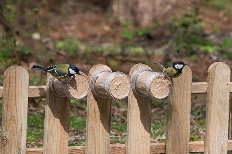 Heldigvis er der nogen som har taget ideen op med jordnøddesmør til vilde fugle og laver dem i handy engangsglas, der er lige til at hænge op i forskellige ophæng og nu kan de tilmed fås med nødder, insekter eller bær tilsat, så nemmere kan det ikke blive at fodre havens fugle med energirigt foder.