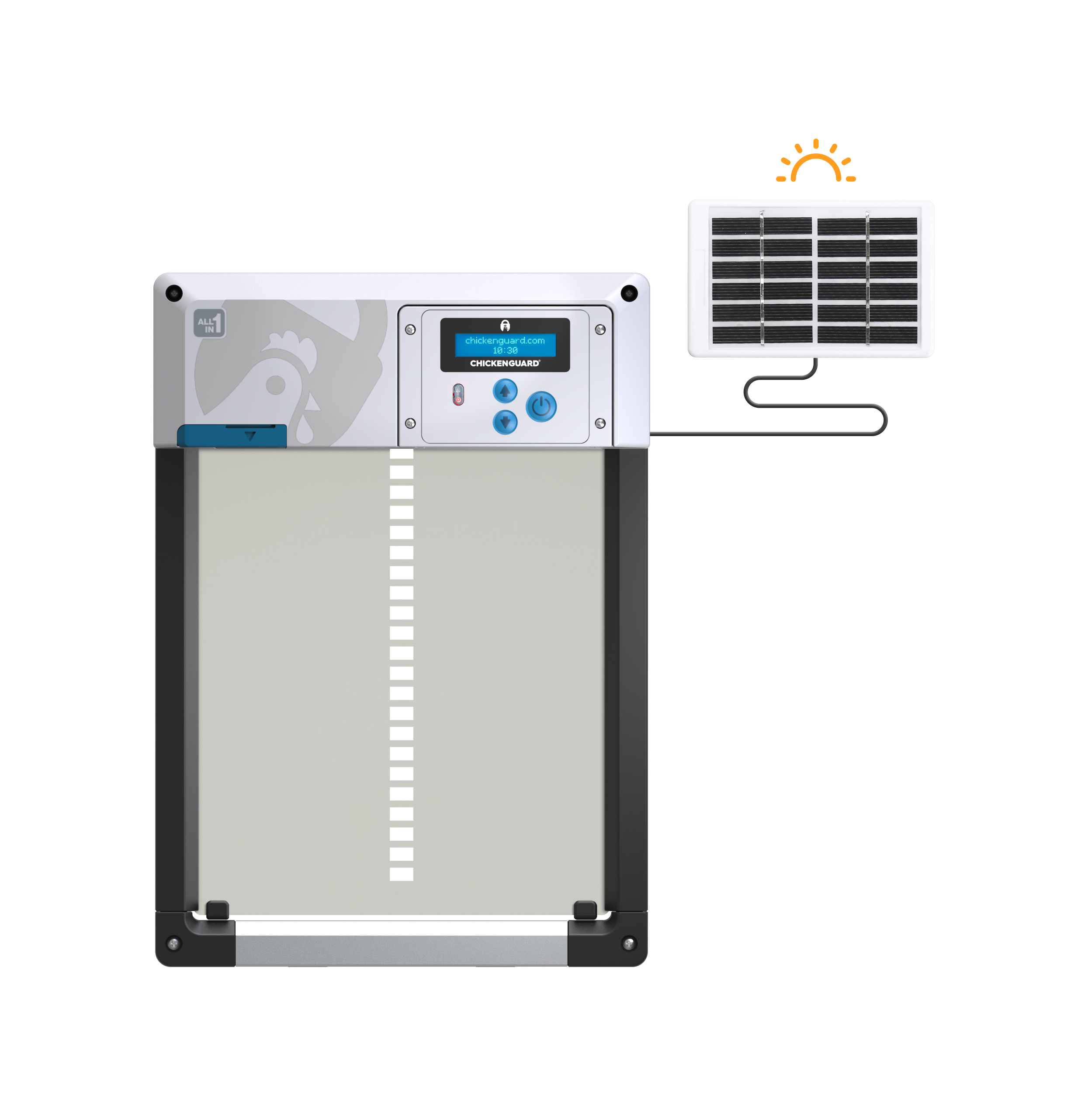 Der er tænkt på hver eneste lille detalje, lige fra muligheden for at sætte kontrolpanelet udenpå hønsegården til den lette udskiftning af batterier til det super holdbare aluminiums dørtrin. All In One er bygget til at holde.